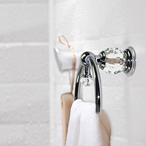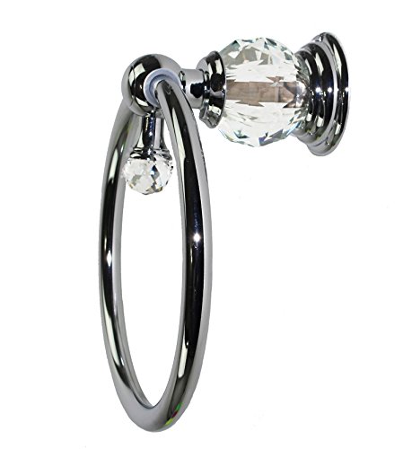 Chrome & Crystal Towel Ring Vanity Towel Holder Wall Mounted with Screws Included Round Silver By Decor Hut