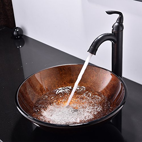 Artistic Tempered Glass Above Counter Round Lavatory Bathroom Vessel Sink, Vessel Sinks For Bathroom Without Stopper