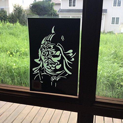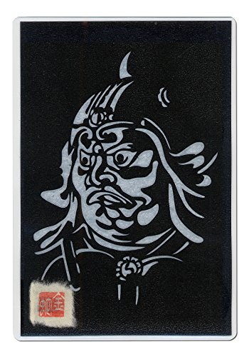 Japanese art collage KIRIE “Todaiji Jikokuten - The face -” Dhrtarastra (Buddhist deity) one of the Shitenno (the Four Heavenly Kings) Made by Washi(Japanese paper) Mist Blue, 4” x 6”