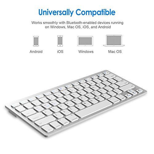 Bluetooth technology. Works with iOS, Android, Mac and Windows, with shortcut keys for all four systems