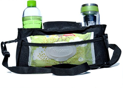 EXTRAS THAT MAKE A DIFFERENCE - We've packed this stroller organizer with convenient extras that are subtle, but would be missed if they aren't there. Attach the shoulder strap and the stroller straps fold down out of the way. Need to clean the cup holders? Flip the leak-proof lining inside out for easy cleaning. Need more space? Full-length mesh pouch along the back makes room for extra diapers and wipes, a book and more!