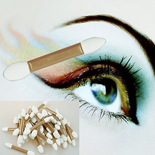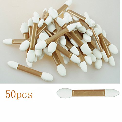 50Pcs Disposable Gold & White Cosmetic Makeup Tool Eyeshadow Applicator Double Sided Sponge Tipped Eyeshadow Brush