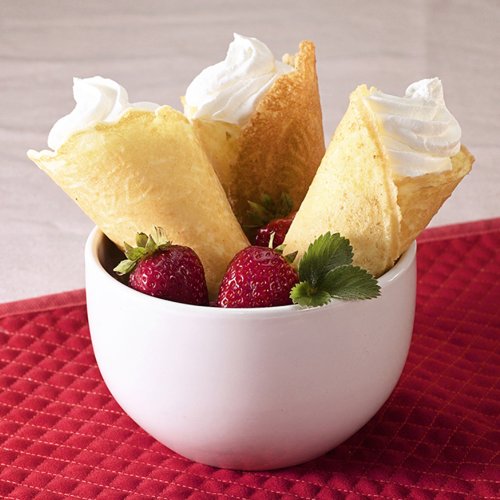 - Feature : Makes traditional Scandinavian cone-shaped cookies / Imprints a pattern of flowers and leaves on each cookie / Iron is made of warp-resistant cast aluminum / Wood rolling cone and recipes included / Made in America