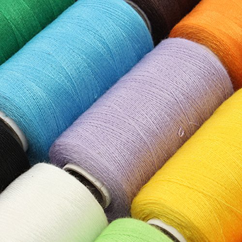 -. Feature : Material: Polyester / Length: 1000 yards per spool / 24 different colours, each colour per spool / Package included: 24PCS x thread spool / Use: Knitting, Sewing, Crochet, Cross Stitch, Teabag, Embroidery, Hand Knitting, Weaving, etc.