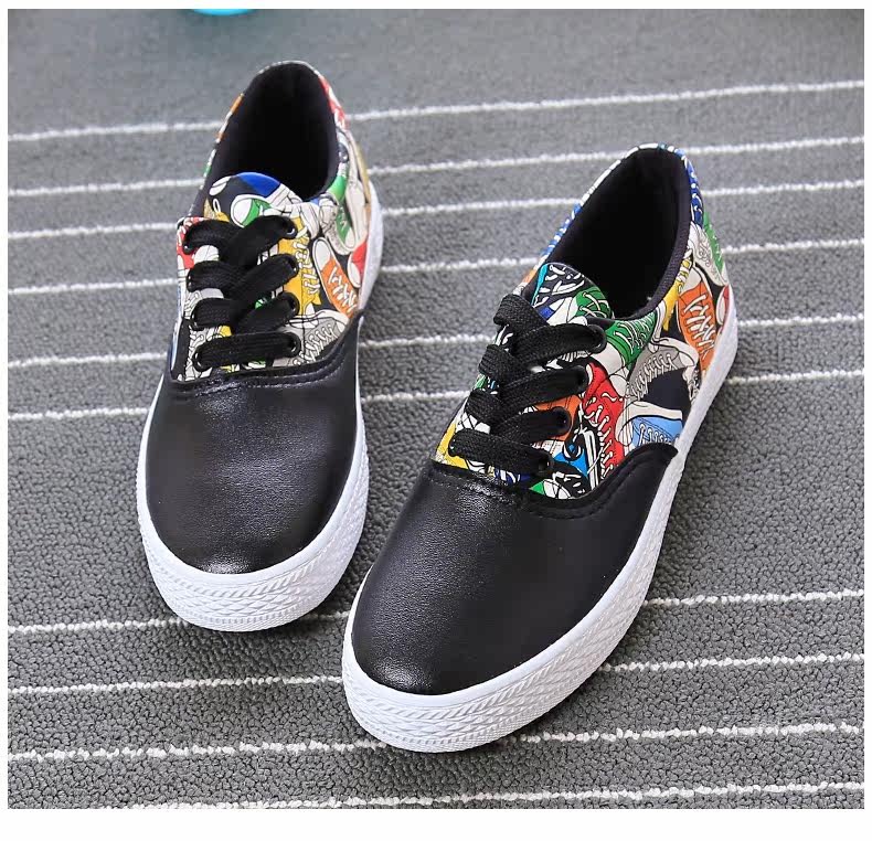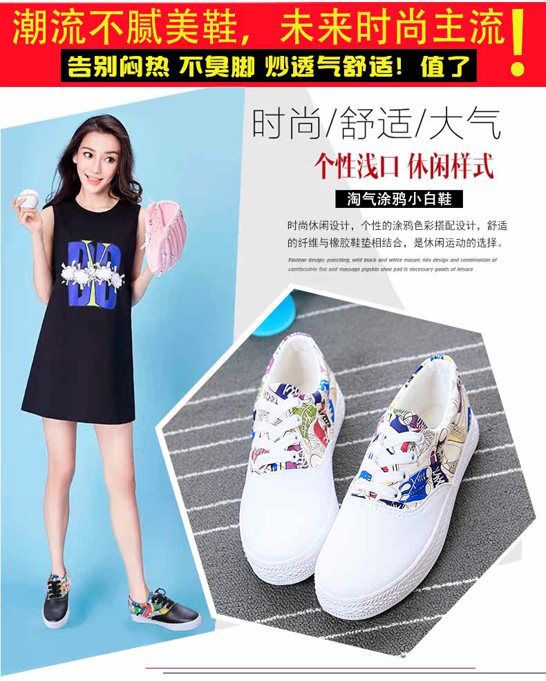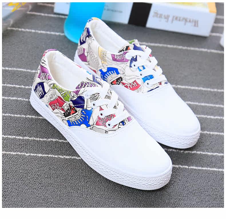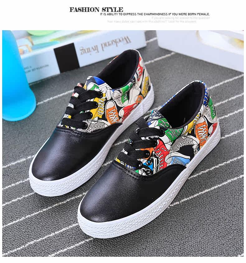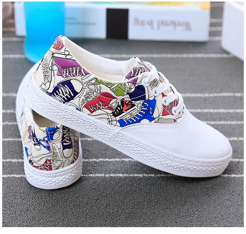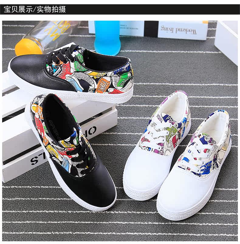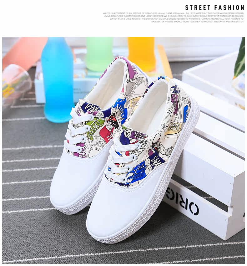 春季涂鸦小白鞋女 新款 百搭 平底韩版帆布鞋学生板鞋运动鞋