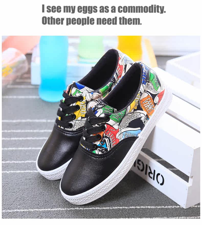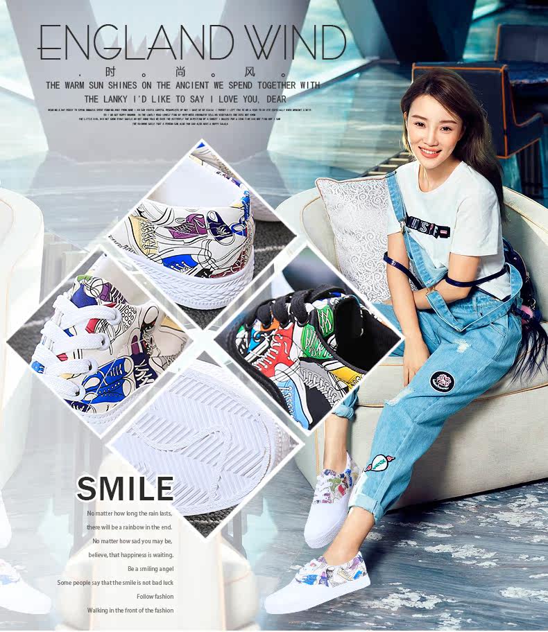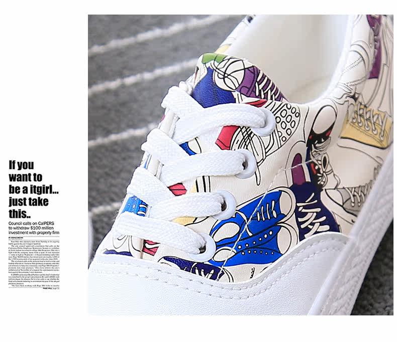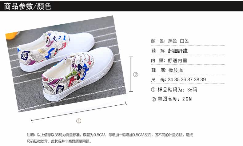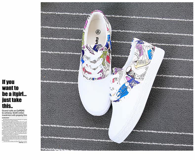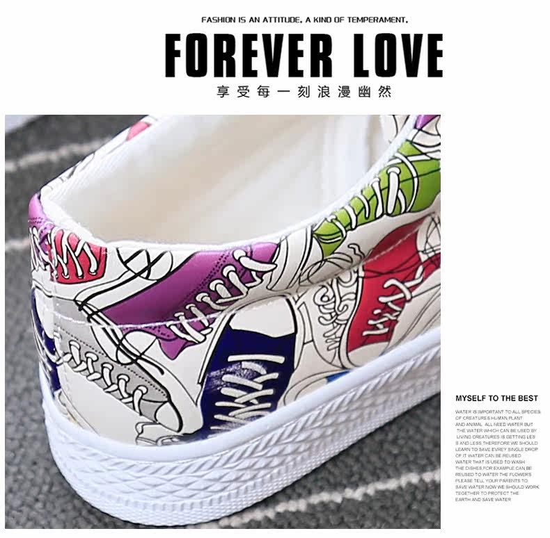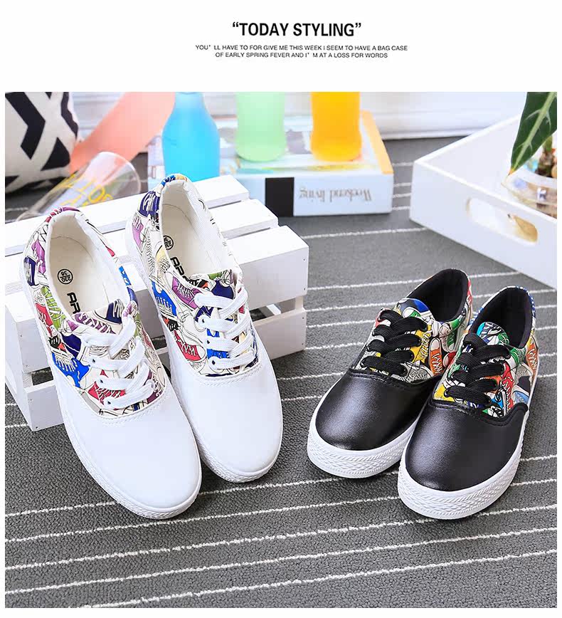 春季涂鸦小白鞋女 新款 百搭 平底韩版帆布鞋学生板鞋运动鞋