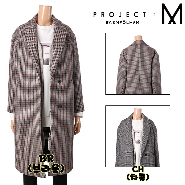프로젝트엠 여성 오버핏 체크패턴 롱 코트 EPY4CC2402
