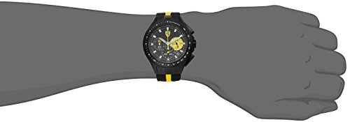 -. Binding : Watch -. Brand : Ferrari -. Color : Black -. Department : mens -. EAN : 0885997057165 -. Feature : Black stainless steel watch with stationary bezel featuring 60-second, 60-minute, and yellow 24-hour subdials with date window displayed between four and five o'clock positions on Ferrari logoed black dial / Quartz movement with analog display / Mineral crystal dial window / Buckle closure on yellow-striped black silicone strap / Water-resistant to 50 m (165 ft) -. Label : Ferrari -. Manufacturer : Ferrari -. Model : 0830025 -. MPN : 0830025 -. PackageQuantity : 1 -. PartNumber : 0830025 -. ProductGroup : Watch -. ProductTypeName : WATCH -. Publisher : Ferrari -. Studio : Ferrari -. Title : Ferrari Men's 0830025 "Race Day" Stainless Steel Watch with Yellow-Striped Black Silicone Strap -. UPC : 885997057165