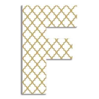 -. Title : The Home Stupell Home Decor Collection Trellis Hanging Wooden Initial, Gold/White, F, 18"