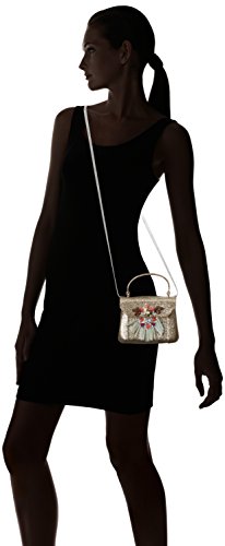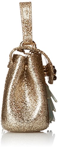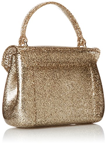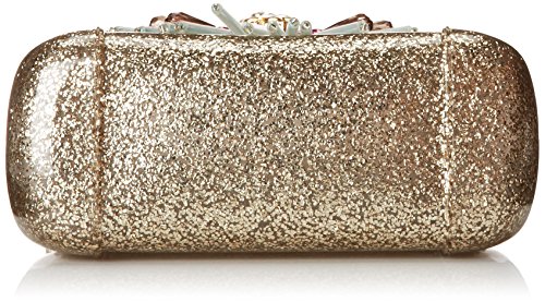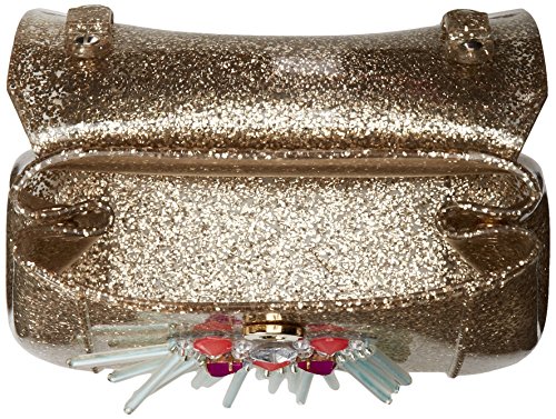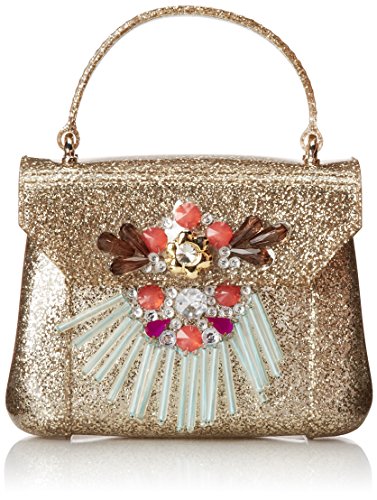 - Feature : Mini-size handbag in glossy glitter with elaborate jewel and bead cluster on front / Single top handle and removable cross-body strap / Removable strap length: 55"