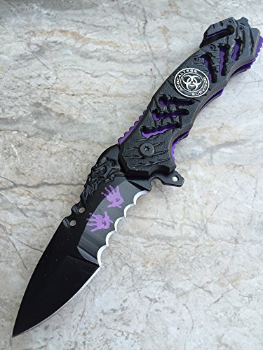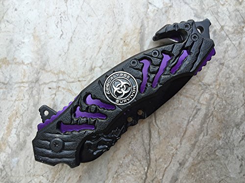 Z-hunter Spring Assisted Knife 4.75" Closed Bio Hazard Medallion Apocalypse Survivor Zombie Knife - Purple