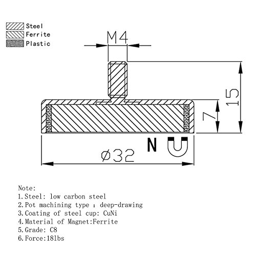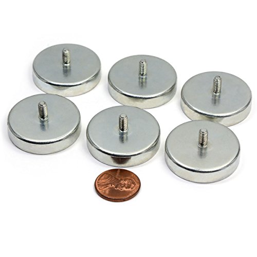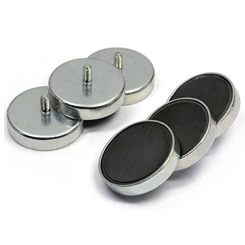 6 Pieces of CMS Magnetics Ceramic Cup Magnets w/ Male Threaded Stud. 18 Pound Holding Power Each with 1.26" in Diameter