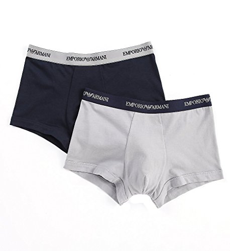 Emporio Armani Men's 2 Pack Cotton Trunk, Grey/Marine, Large