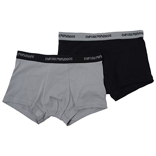 Emporio Armani Men's 2 Pack Cotton Trunk, Black/Grey, Medium