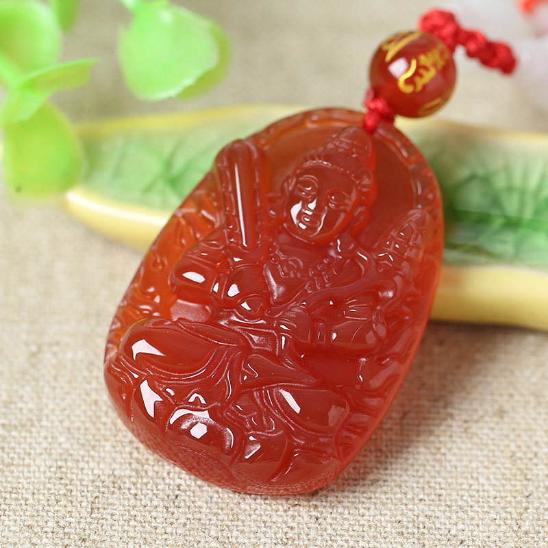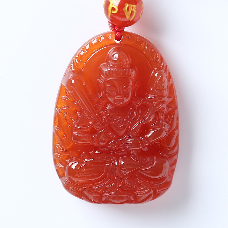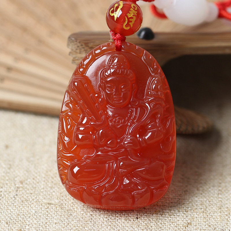 开光天然红玛瑙虚空藏菩萨十二生肖属牛属虎本命佛守护神吊坠项链