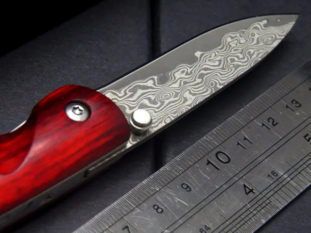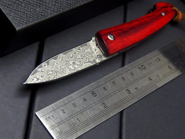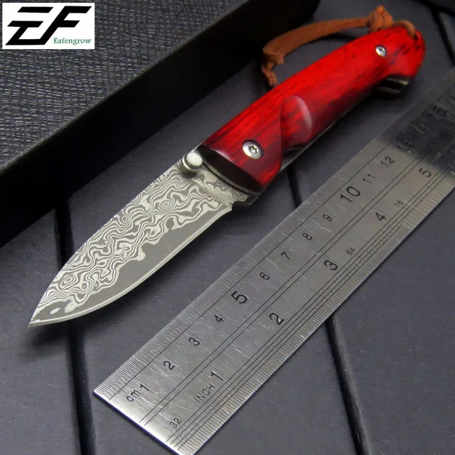 | [해외] 새로운 EF84 접는 블레이드 나이프 레드 나무 핸들 다마스커스 스틸 야외 캠핑 도구 서바이벌 전술 나이프 손 도구 |