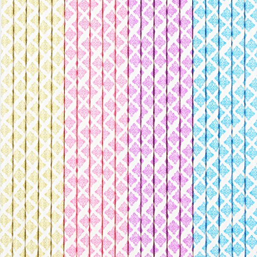 - STYLISH NEW DESIGN- 100 Pcs floral Damask patterns straws include four colors, 25 pink straws, 25 gold straws, 25 blue straws and 25 purple straws,very beautiful, will meet your different needs.
