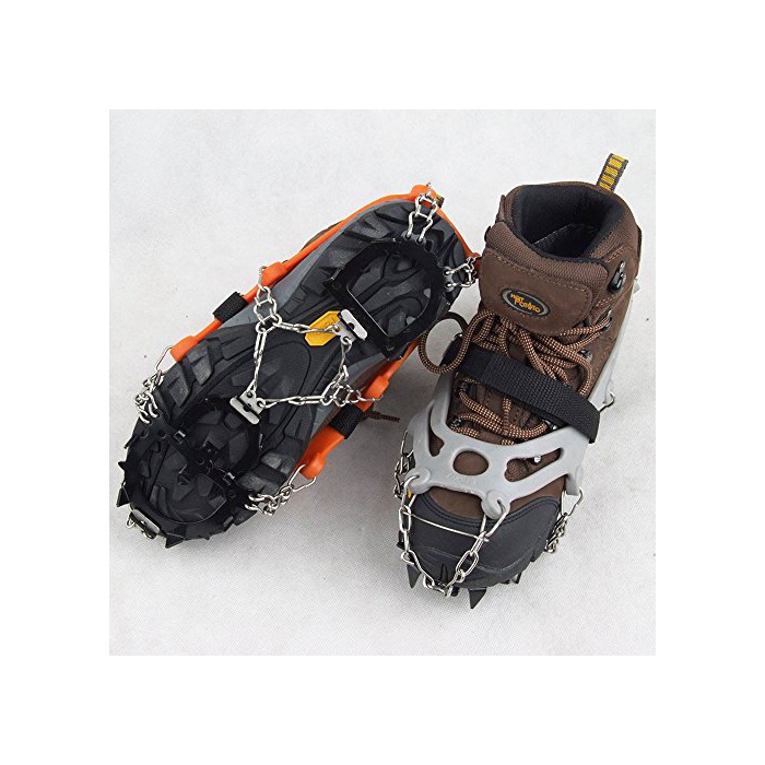 밴드 부분에는 부드러운 소재를 쓰고, 녹슬어 어려운 스테인레스강을 사용한 스파이크(손톱)를 체인으로 연결 시키는 것(일)에 보다 부츠의 굴곡으로 유연하게 추종,스키화 등이 딱딱하 #의 구두부터 바닥이 부드러운 구두까지(스포츠 슈즈,하이킹 슈즈,마운틴 부츠)고, 폭넓게 대응합니다.