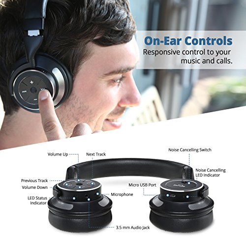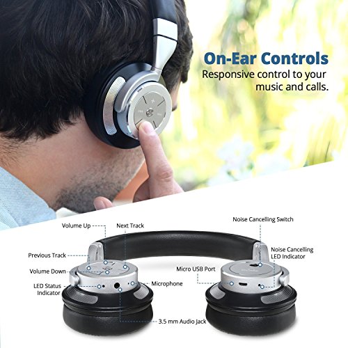 IDeaUSA iDeaUSA Active Noise Cancelling Kopfhorer, Bluetooth 4.1, eingebautes Mikrofon, Wireless HiFi Stereo Over-Ear Headset, 16 Stunden Wiedergabe