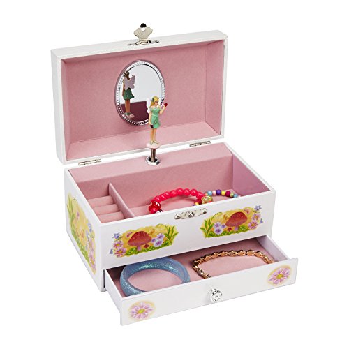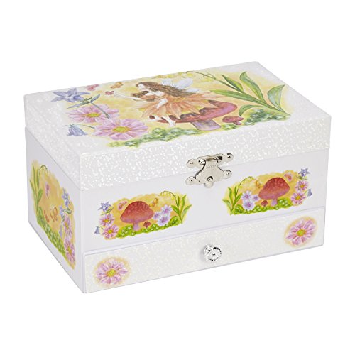 JewelKeeper Fairy in the Wild Musical Jewelry Storage Box with Pullout Drawer, White Design, Be...