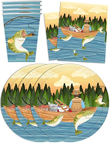-. Title : Gone Fishing Birthday Party Supplies Set Plates Napkins Cups Tableware Kit for 16