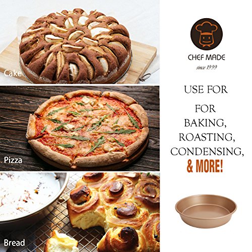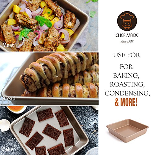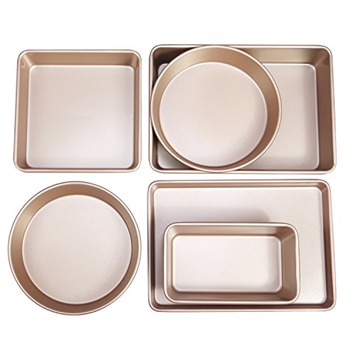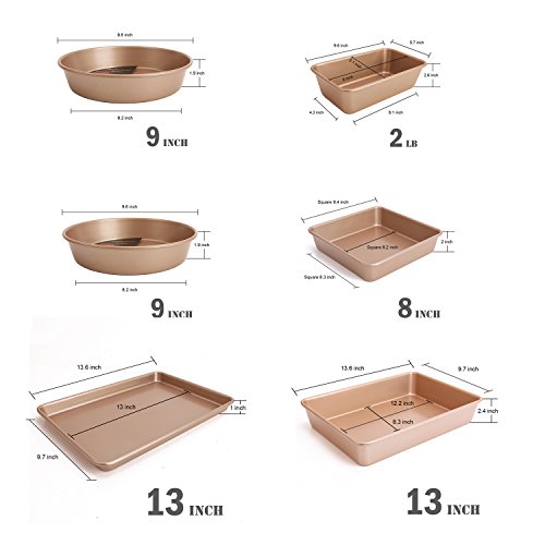 CHEFMADE Non-stick Bakeware Set 6-Pieces Heavy Duty Baking pan, Oven Roasting Round 9", 9"x 5", Square 8" ,13"x 9"x 1",13"x 9"x 2.4"(Champagne Gold)