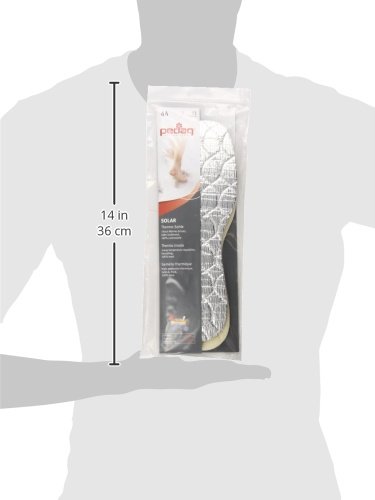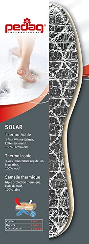 ReleaseDate : 2015-06-22 Studio : Pedag Publisher : Pedag Binding : Health and Beauty Product Description Pedag SOLAR: If you know you like Solar, save a little with this pack of 2 pair. Solar is a winter insole that provides effective insulation. 3 layers of insulation combine to keep body heat from escaping through the soles of your shoes or boots. The upper layer is pure quilted wool which is durable, comfortable and provides a little warmth. The middle layer traps body heat with thousands of air bubbles encapsulated in high tech foam. The bottom layer is a special aluminum reflector that keeps cold from penetrating and heat from escaping. Solar keeps feet warm yet it is thin enough to fit into most normal comfort type shoes and boots. Solar is a flat insole that will also provide a little cushioning. For a full orthotic insole with the same 3 layers of insulation see Pedag Viva Winter. 0