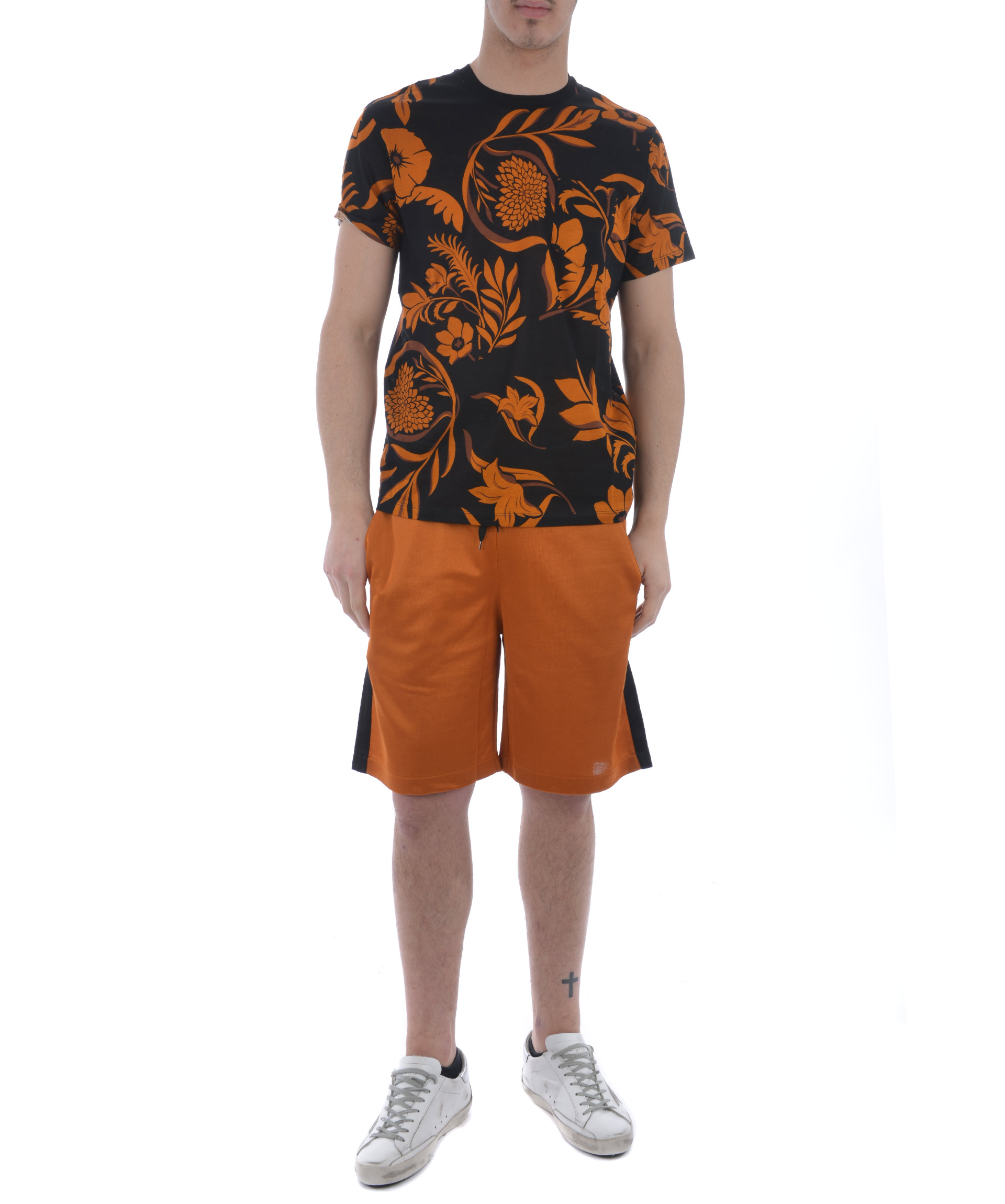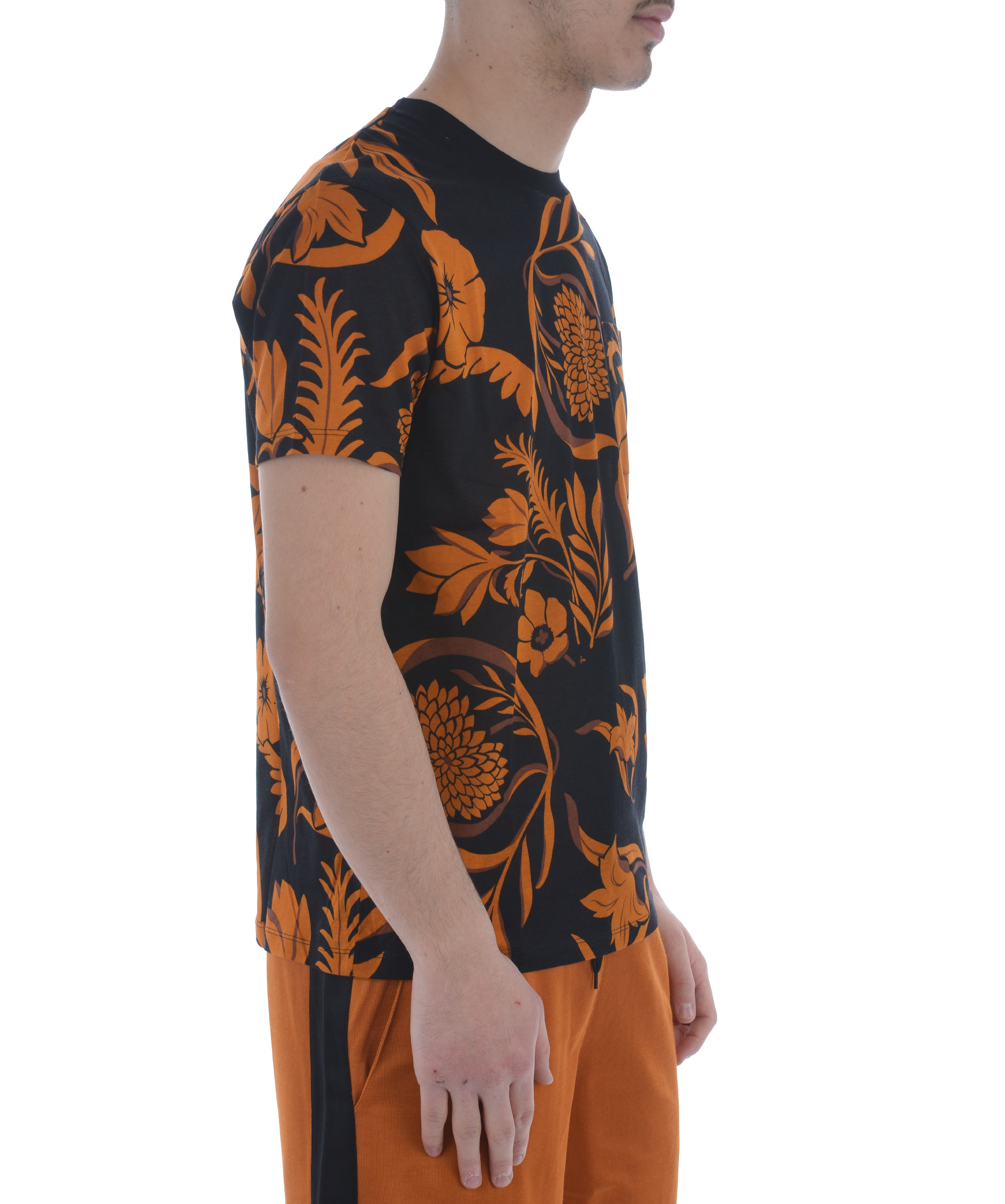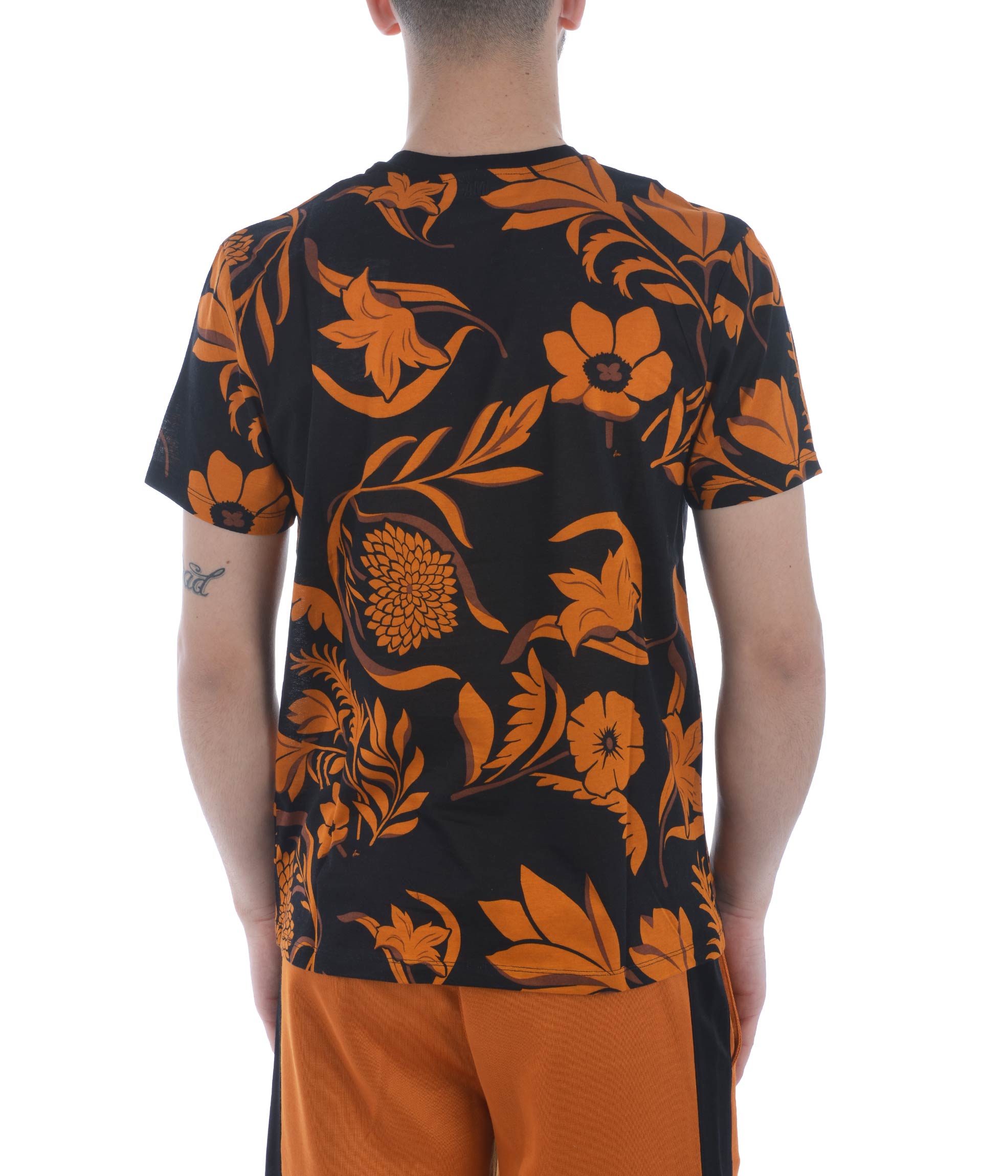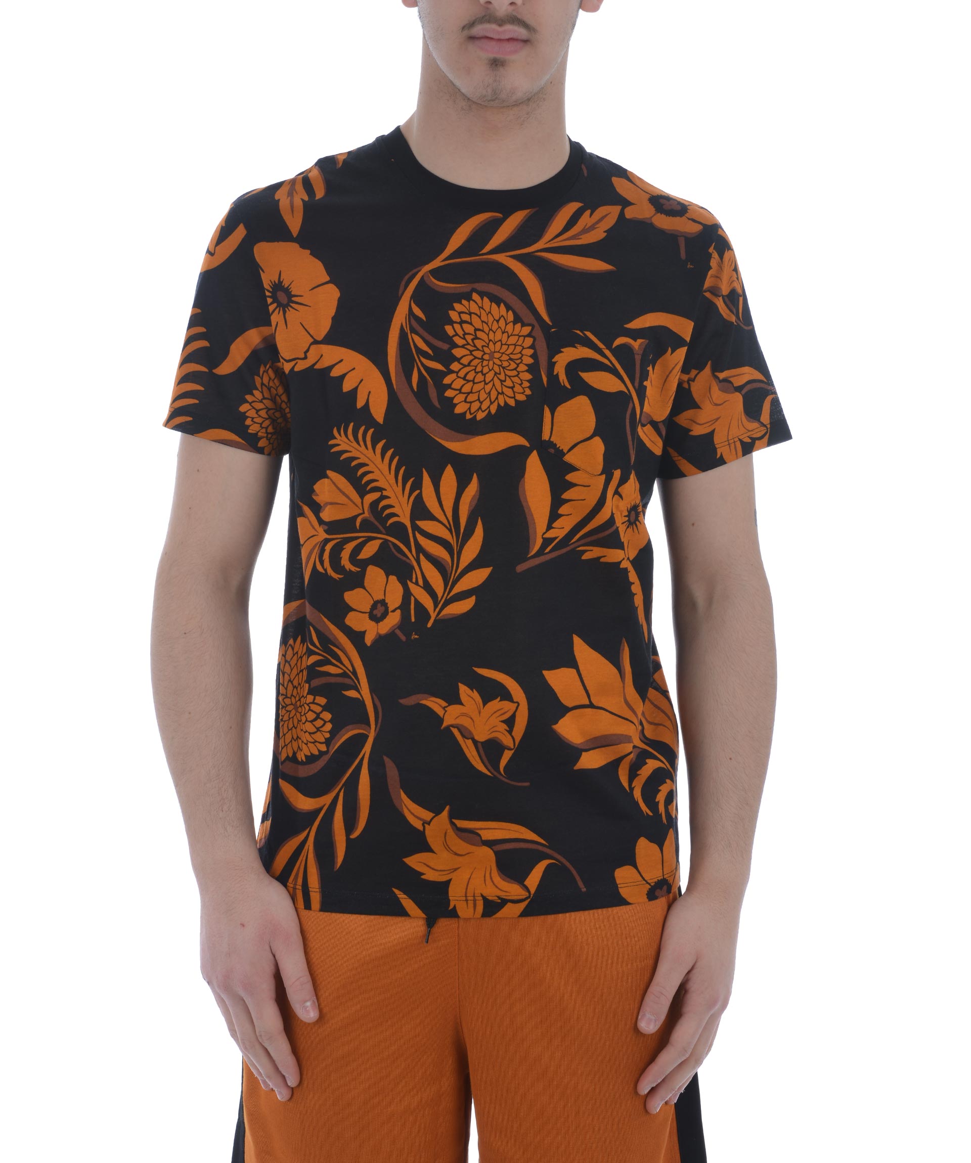 Floral T-shirt from AMI Alexandre Mattiussi: Black/Orange Floral T-shirt with round neck, short sleeves and straight hem.