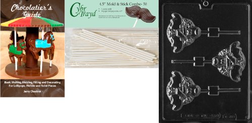 Cybrtrayd 45St50Bk-C411 'Reindeer Lolly' Christmas Chocolate Candy Mold with 50 4.5-Inch Lollipop Sticks and Chocolatier's Guide