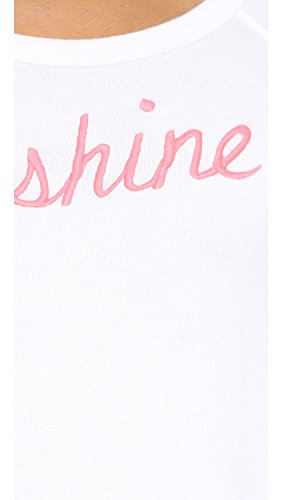 Embroidered 'Sunshine' lettering details the front of this slouchy SUNDRY top. Banded edges. Short raglan sleeves.