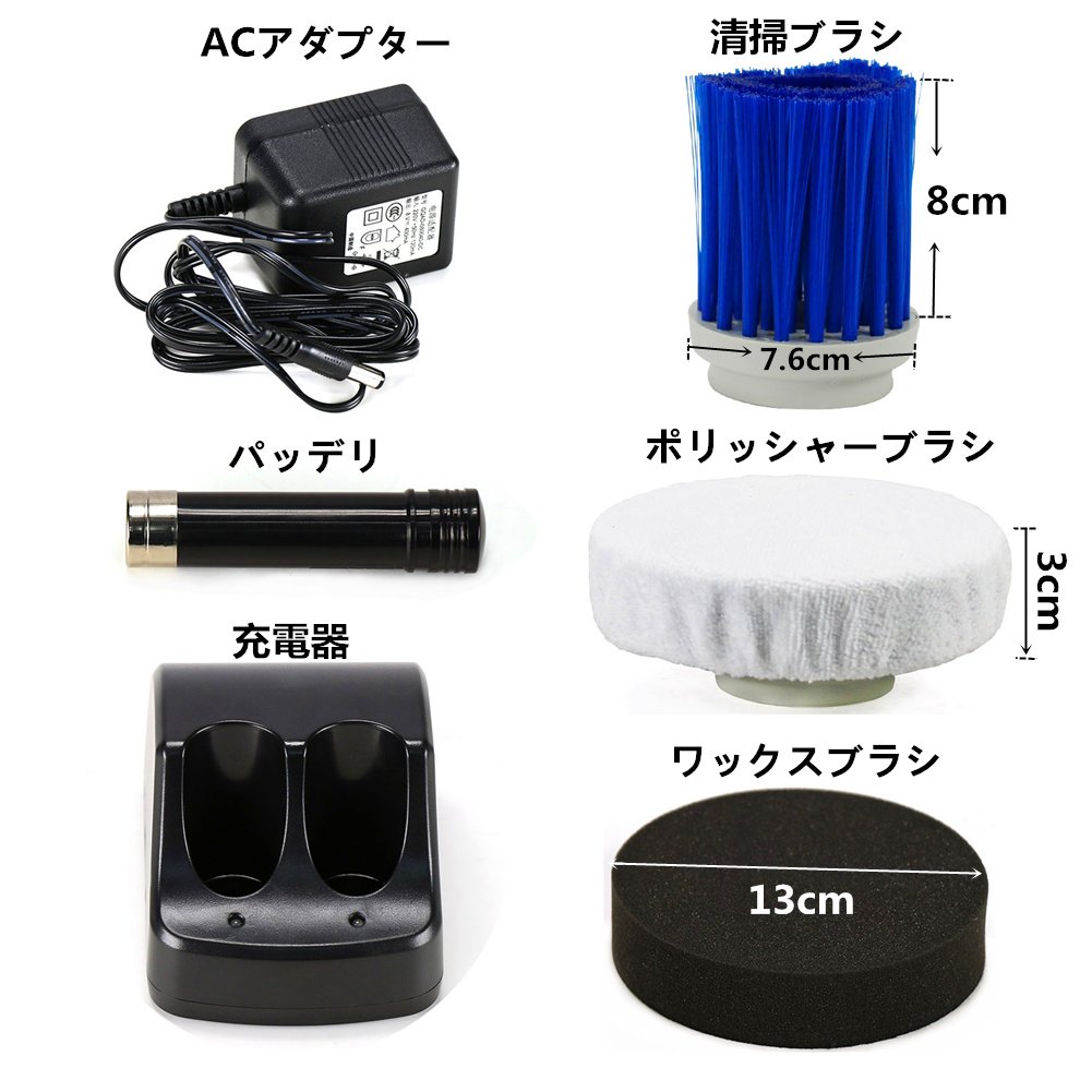 Three brushes, cleaning brush, wax brush, polisher brush are attached.