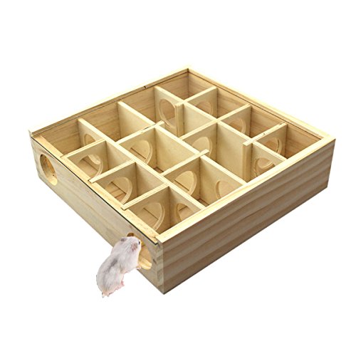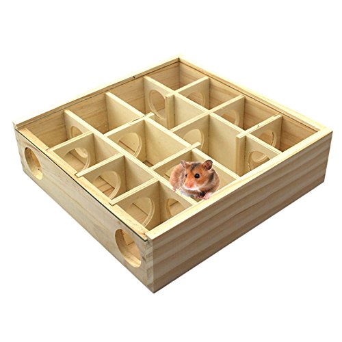 Feature: Size: 9.8* 9.8* 2.7 inch Made of natural wood , safe for your pet Perfect gift for your cute small animal Give your pet fun and have hours of fun watching them play Fun to play, climb and rest,relieves boredom and increases activity level Maze toy provides your small animal with a funny and cozy place for playing and sports Suit for small animals ferrets, rat, hamster, squirrel, chinchillas and other small furry animals. Package: 1 x hamster maze toy 0