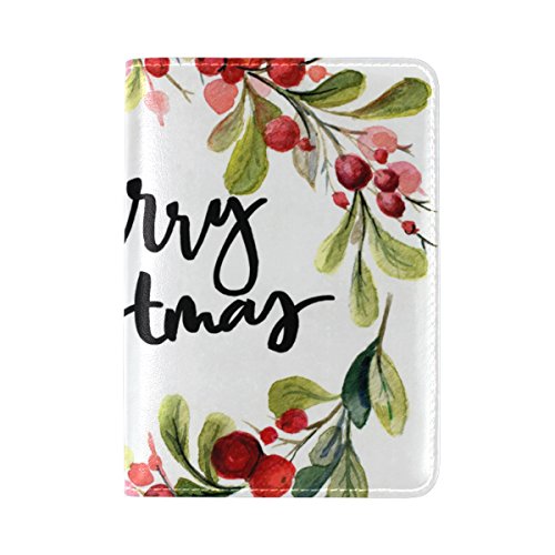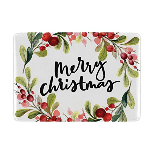 (La Random)/Accessories/Wallets, Money Key Organizers/DIRECT FROM USA/La Random Watercolor Berry Wreath For Christmas Passport Holder Cover Leather Travel Passport W...