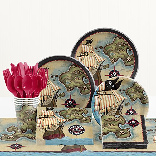 -. Feature : Each Pirate's Map Birthday Party Supplies Kit contains: 8 Pirate's Map Paper Plates, 8 Pirate's Map Dessert Plates, 16 Pirate's Map Napkins, 16 Pirate's Map Beverage Napkins, 1 Pirate's Map Plastic Tablecloth, 8 Pirate's Map Cups, and 24 Classic Red Assorted Plastic Cutlery / 81 piece birthday party supplies kit / Serves 8 guests / Themed tableware kit is perfect solution to serve your child's birthday party guests