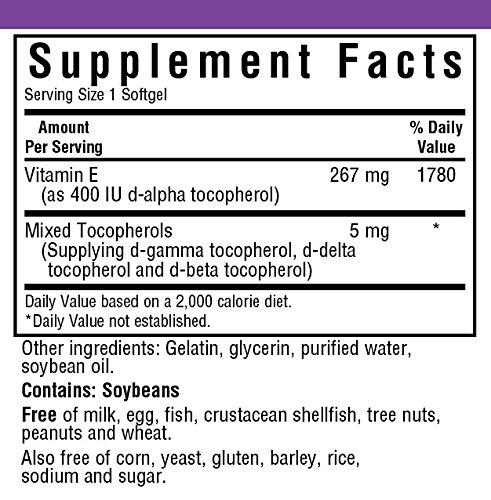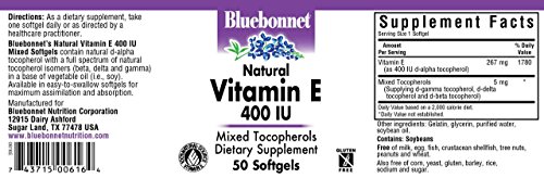 Bluebonnet's natural vitamin e mixed soft gels provide the popular, natural d-alpha tocopherol with a full spectrum of natural tocopherol isomers (beta, delta and gamma) in a base of vegetable oil (i.e., soy). Available in easy-to-swallow soft gels for maximum assimilation and absorption. Vitamin e is a powerful, fat-soluble antioxidant that helps protect cell membranes against damage caused by free radicals and prevents the oxidation of ldl cholesterol. It is necessary for the structural and functional maintenance of skeletal, cardiac, and smooth muscle. It also assists in the formation of red blood cells and helps to maintain stores of vitamins a and k.Feature