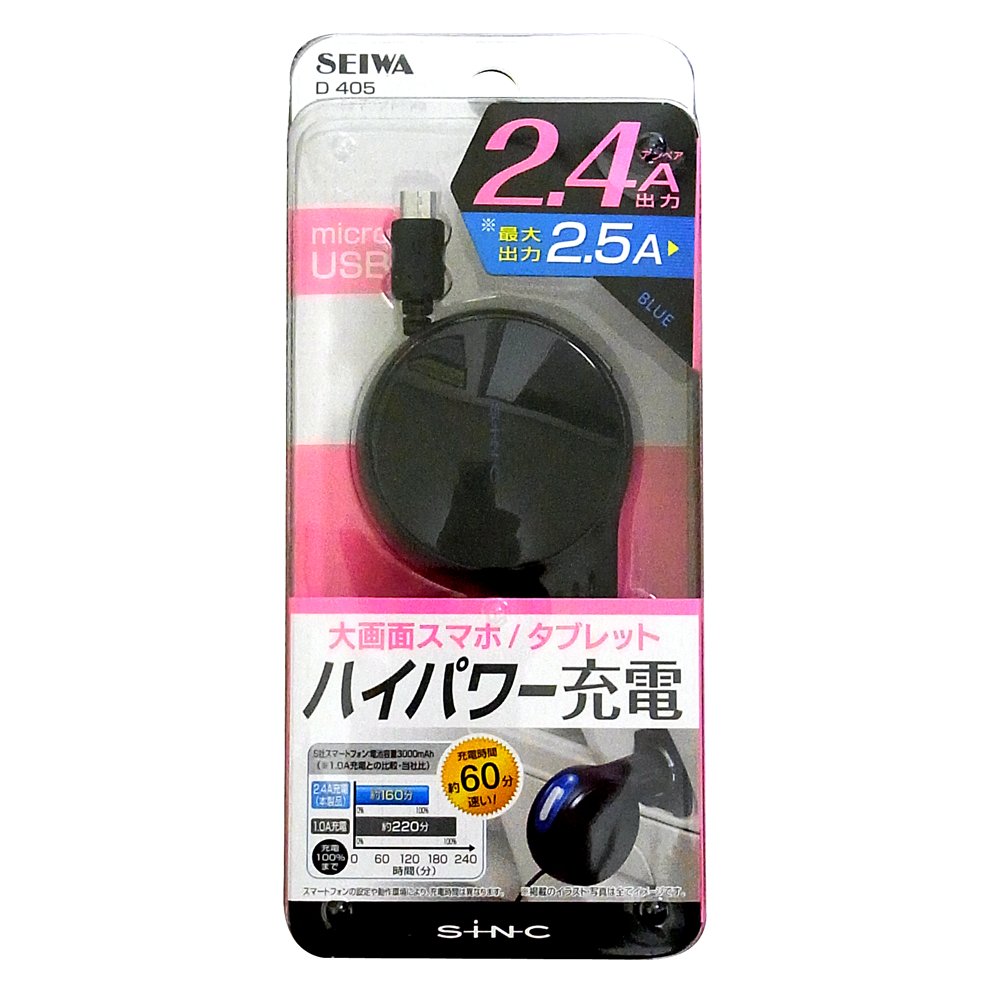 Seiwa charger reel charger X3 microUSB 2.4A 12-24V Black Blue D405