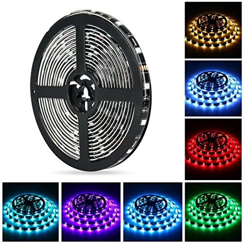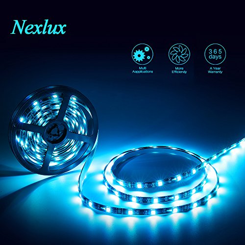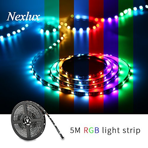 16.4ft LED light strip, Nexlux Waterproof 5050 SMD Single RGB LED Flexible Strip Light Black PCB Board Color Changing Decoration Lighting (No power adapter and remote )