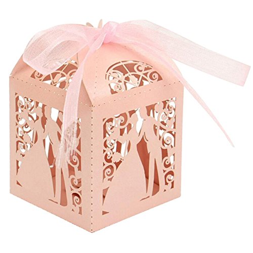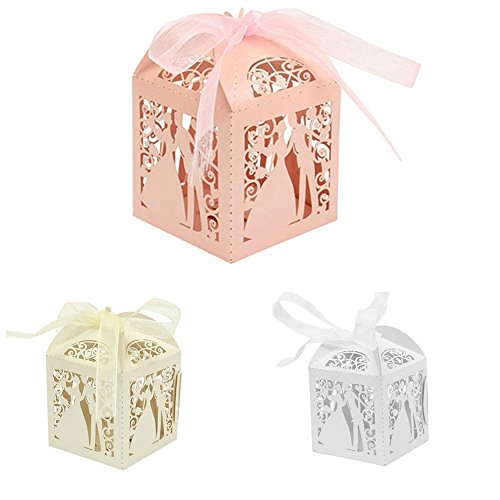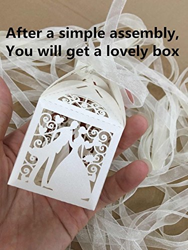 Lothver 50pcs Wedding Favors Candy Box Love Heart Laser Cut Romantic Boxes With Organza Ribbon for Party Decoration