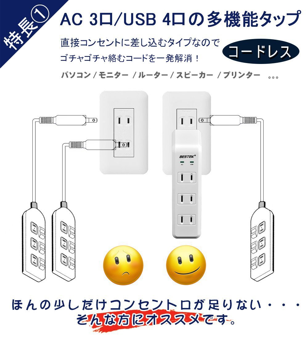 Three AC outlets and four USB ports, total of up to 5.2 A output, various electronic equipment can be used at the same time.