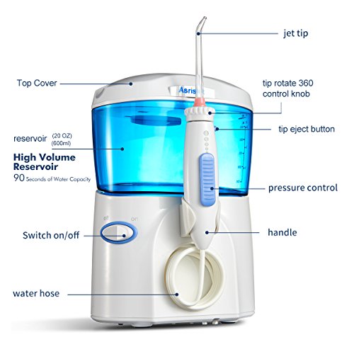Asrisuk Water Flosser Dental Care Water Jet Oral Irrigator Flosser with 8 Multifunctional Tips and 4 Dental Hygiene Tools