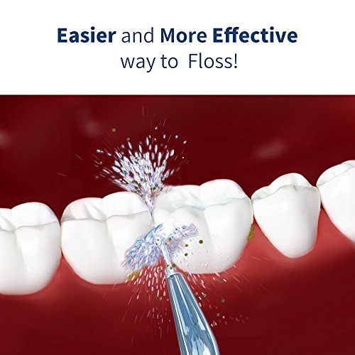 6 Pressure Settings, 8 Water Flossing Tips, 90 Seconds of Water Capacity , 4 Piece Professional Grade Stainless Steel Dental Kit including Dental Scaler,Tartar Scraper,Dental Tweezer,Mouth Mirror(Dental care equipment should be disinfected by boiled water before usage)