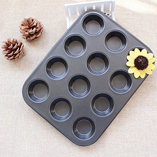 12-Cup Mini Cake Egg Tart Mold Muffin Cupcake Baking Pan(1 Pack, Carbon Steel)