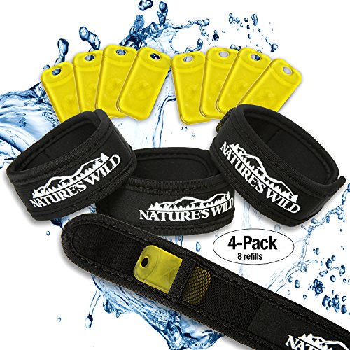 -. Brand : Nature's Wild -. Color : Black -. EAN : 0711599319298 -. Feature : SAFE FOR THE WHOLE FAMILY - It's time for an all natural approach that is easy on the senses and offers lasting protection from Mosquitos, Gnats, Ticks, Wasps, Fleas, Moths, Chiggers and House Flies. Expectant and Pregnant mothers can protect from annoying and dangerous insects while knowing that they are not coating themselves with harsh, Deet based chemicals. / SMELLS GREAT - Nature's Wild bug repellent bracelets offer a pleasant smelling scent of natural oils in a comfortable, premium Neoprene bracelet that offers days of waterproof protection without the discomfort and odor of traditional mosquito repellents. / SAVINGS - 4 - Pack includes 4 black neoprene bracelets and 8 refill capsules. Each capsule provides protection for up to 15 days, which gives you 120 days total of protection. Stop buying expensive sprays and lotions or cheap throw away disposables. For maximum longevity, place bracelets in a resealable bag between uses and store in cool, dry temperatures. / ADJUSTS TO FIT ANY SIZE - Can be worn on the wrist or ankle or even attached to a backpack, belt loop, hat or stroller. Stop avoiding nature because nature won't leave you alone. Perfect for camping, golfing, gardening, picnics, bbq, swimming, boating, horseback, hiking, cycling, fishing, boating, campfires, and sports. / 100% GUARANTEE - Gardeners have known for generations that planting certain plants will attract desirable butterflies and hummingbirds while planting others will repel harmful insects. Our enhanced formula of plant extracts has provided excellent results for our customers. 30 day money back guarantee. Note - These fragrances are effective in repelling insects. For best results, wear after a clean shower without perfumes, deodorants or hair care products that may actually attract insects. -. PackageQuantity : 4 -. ProductGroup : Lawn & Patio -. ProductTypeName : OUTDOOR_LIVING -. Size : One Size fits all -. Title : Waterproof Bug and Mosquito Repellent Bracelet by Nature's Wild - Natural Solution to Repel insects with a Deet Free wrist band - 4-pack - 8 refills -. UPC : 711599319298