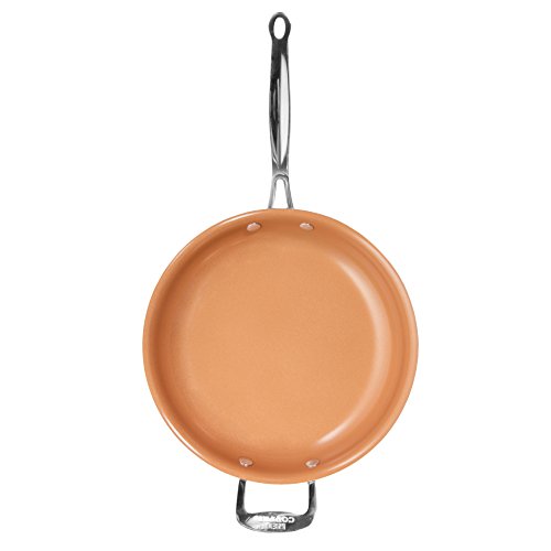 Ceramic copper-infused cookware. Red Copper was designed with you in mind. The 10-inch and 12-inch frying pans have a strong ceramic copper-infused coating that is nonstick and scratch-resistant. When seasoned as per packages directions, your food will slide right out of the pan! No scrapping, no scratching needed. Little to no oil, butter, or grease is needed while cooking, allowing you to cook healthier home cooked meals. Versatile and safe. Have peace of mind while cooking. Red Copper cookware does not contain any PFOAs or PTFEs. These chemicals are normally added to nonstick cookware, but begin to disintegrate at high heats. This causes the coating to flake off into food and potentially ingested. These Red Copper frying pans are oven safe up to 500-degrees Fahrenheit, allowing you to transition from stovetop to oven in one pan. When used on a stovetop, the stay-cool handle will remain a comfortable handling temperature (oven mitts are recommended when removing from an oven). The 10-inch and 12-inch frying pans are perfect for skillet breakfasts, burgers, sausage and peppers, stir-fry, and more! Good to know. To ensure you get the most out of your Red Copper pans, an initial seasoning is required prior to use. Instructions are included with each pan. Occasional seasoning may be required for maintenance and optimal performance. The Red Copper 10-inch and 12-inch frying pans should be hand-washed in warm water with mild soap and towel dried. This offer includes: One 10-inch ceramic copper-infused frying panOne 12-inch ceramic copper-infused frying panStart cooking with Red Copper!.Feature