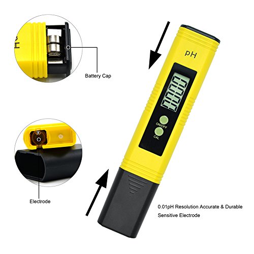 HiHydro PH Meter Digital PH Tester Pen for Household Drinking Water, Aquarium, Swimming Pools, Hydroponics, Water Quality, 0.01 / High Accuracy +/- 0.05 and 0.00-14.00 Measurement Range