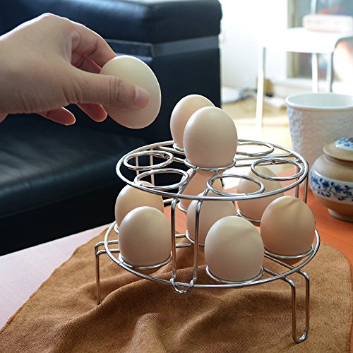 Multi-Function--Not only an egg cooker rack, could also use to Steam the Food with a Plate, such as fish, tamale, crab, veggies and more. Cooks your food with steam retains more vitamins, flavors, nutrients, and texture. Besides steaming foods, You can also use it as cooling rack, pot stand tack, egg holder, Plate Heat Resistant Stand, etc.