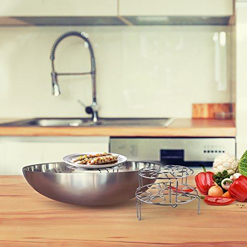 High Quality--The Steam Rack is made of Food-grade 304 Stainless Steel material,solid and durable. Great use for Instant Pot, Pressure Cooker , Sturdy and Durable, easy to clean, dishwasher safe.