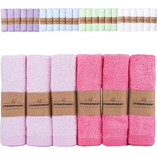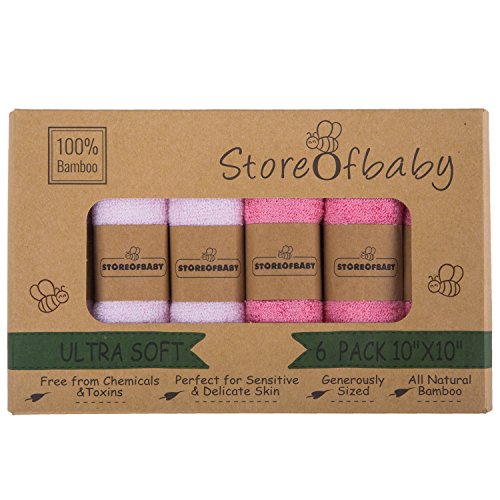 Storeofbaby Baby Girl Pink Washcloths Bamboo Organic Towels for Baby&Women Newborn Baby Washcloths Soft Absorbent Wipes Pink Rose Pack of 6 10"x10"