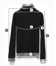 尺码 ①肩宽 ②胸围 ③袖臂围 ④袖口围 ⑤袖长 ⑥衣长 ⑦下摆围