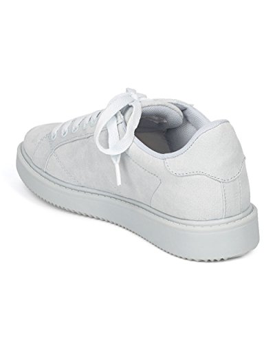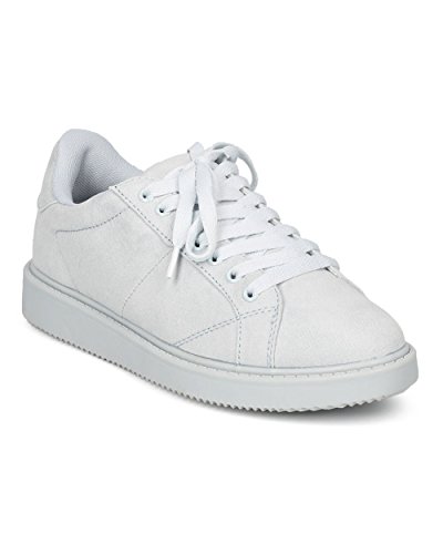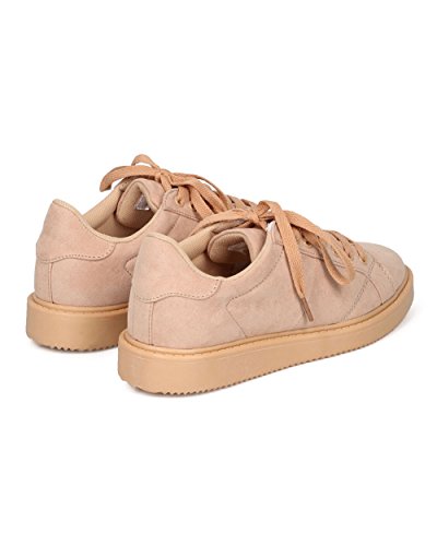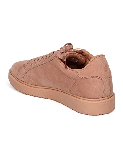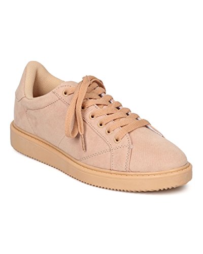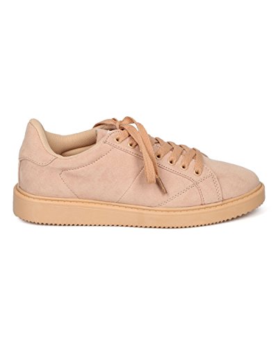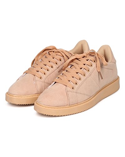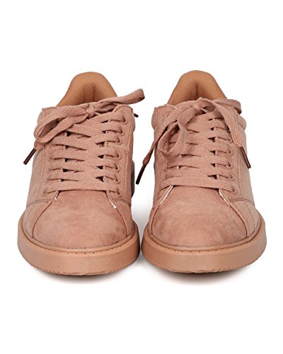 Women Faux Suede Low Top Sneaker - Casual, School, Skate - Lace Up Skater Shoes - GE03 By Misbehave